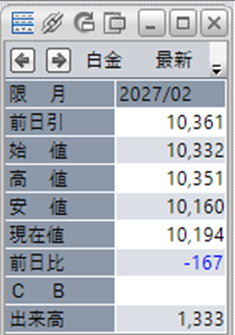 中:大阪取引所 白金 2027年2月限 1分足