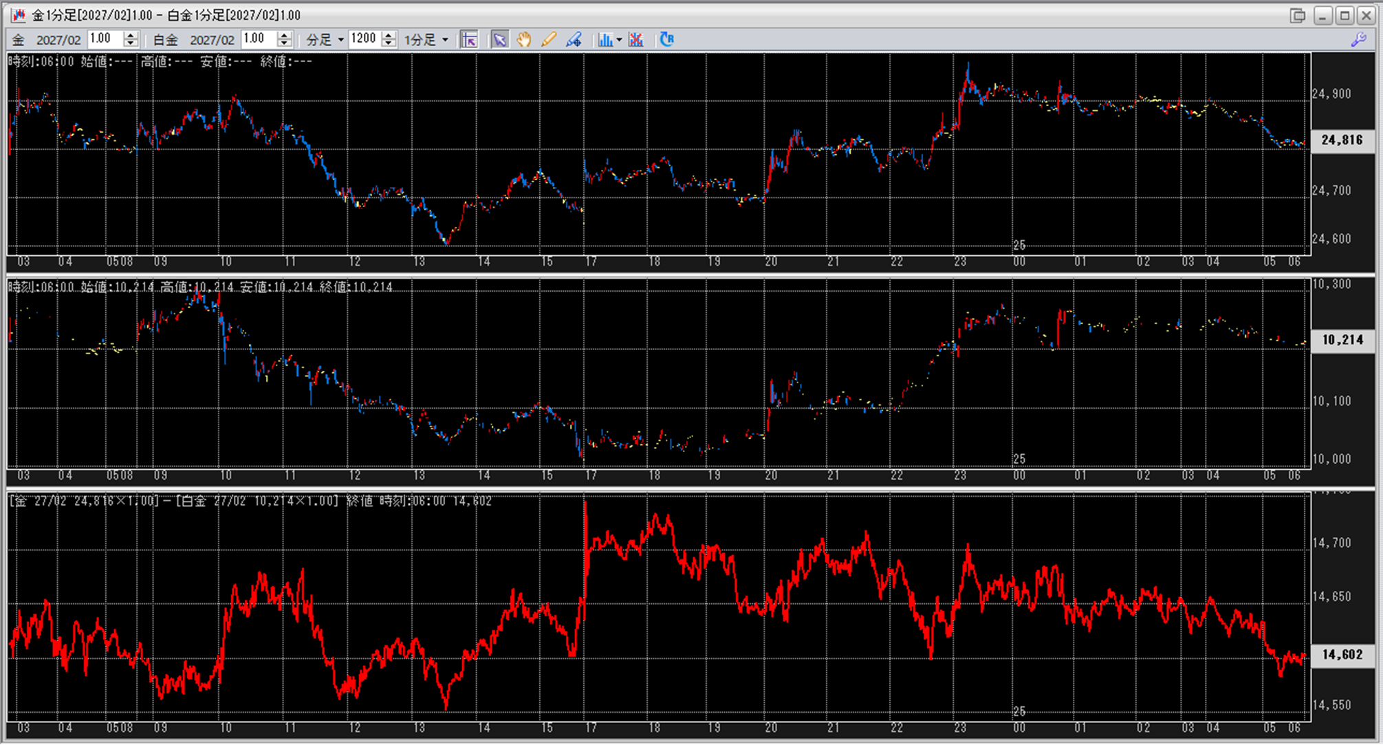 下:金白金鞘(金白金の価格差 = 金1グラムの価格 - 白金1グラムの価格)