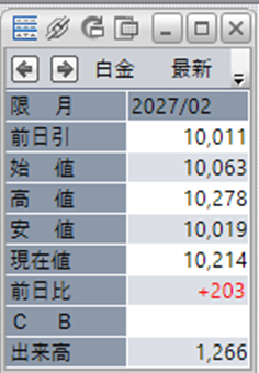 2月限の金と白金の状況だけ下記に張り付けておきます。