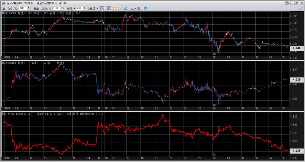 上:金2分足 中:白金2分足 下:金白金鞘