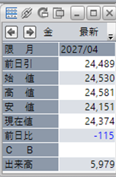 上:大阪取引所 金 2027年4月限 1分足