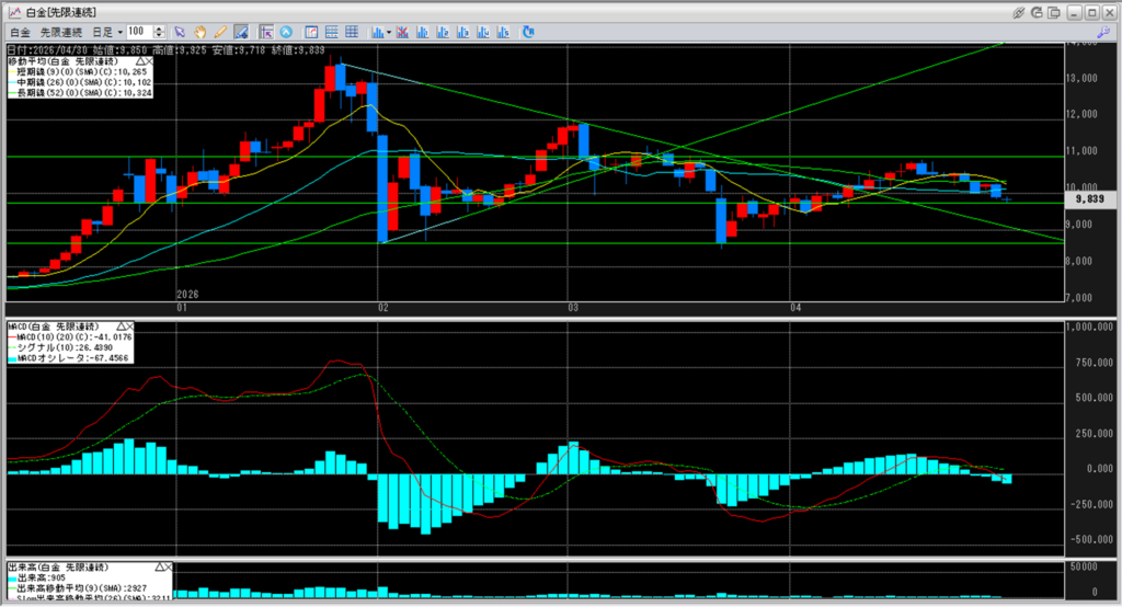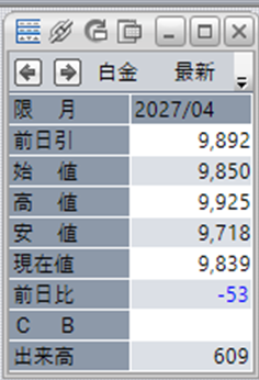 中:大阪取引所 白金 2027年4月限 1分足