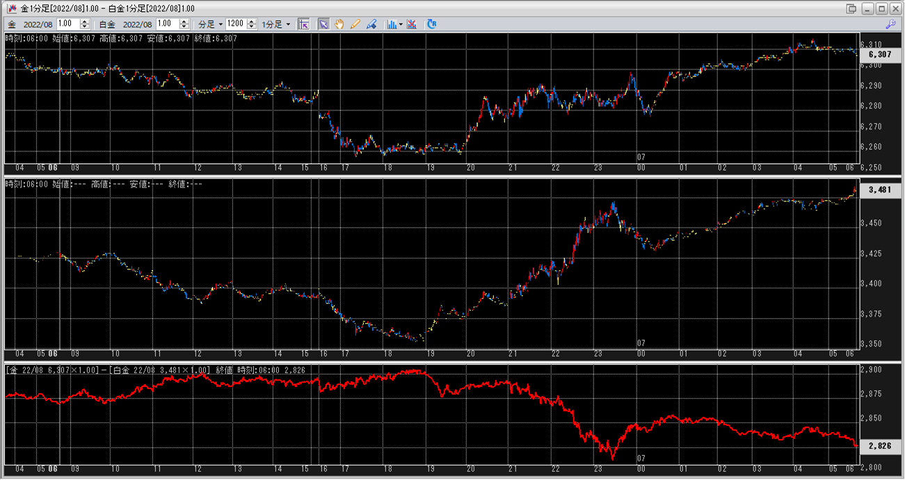 2021年10月6日8:45~10月7日6:00 金白金鞘値動きのチャートを張り付けています。