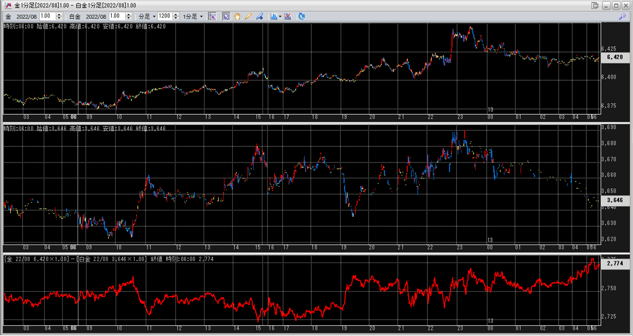 上:大阪取引所 金 2022年8月限 1分足