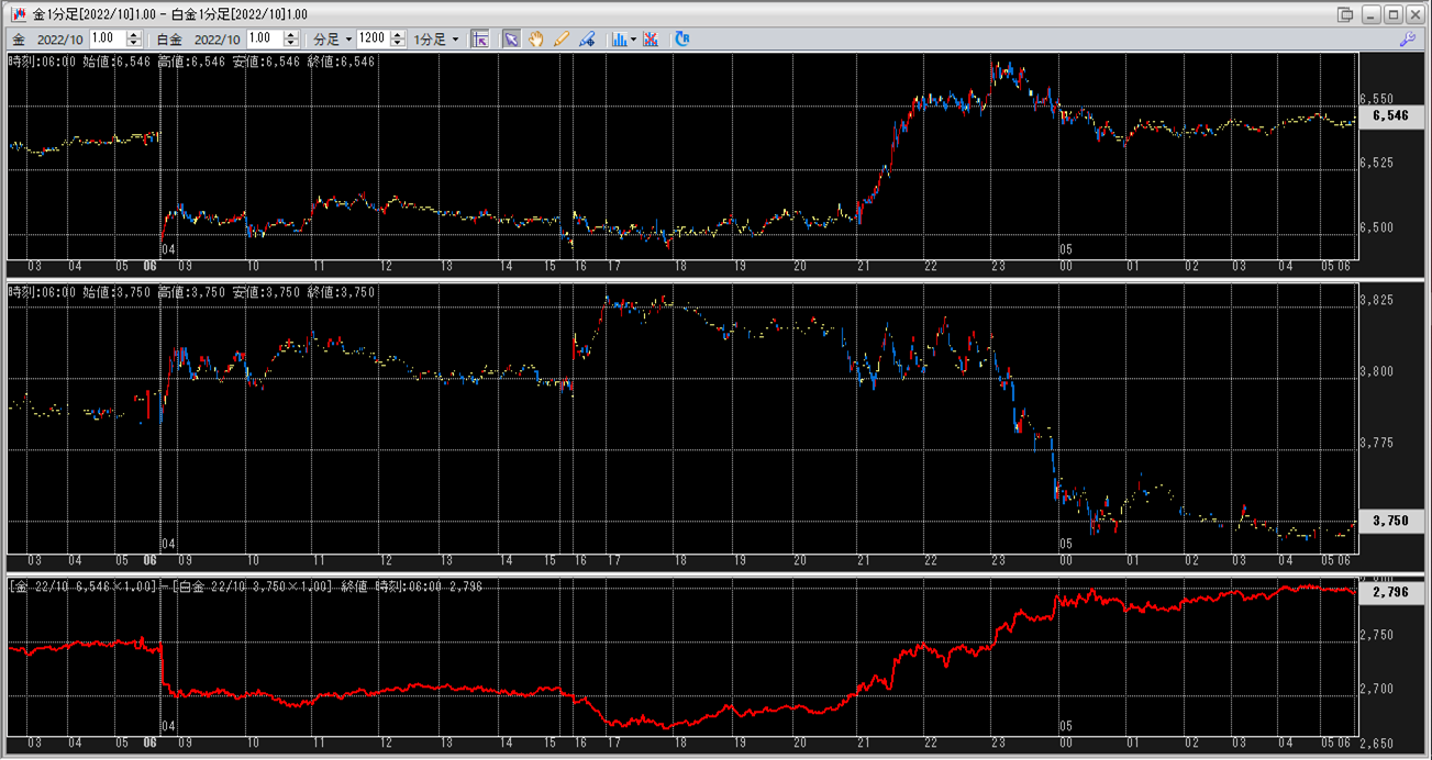 金白金の鞘の値段は、+1σを目指して鞘は拡大していくのか。