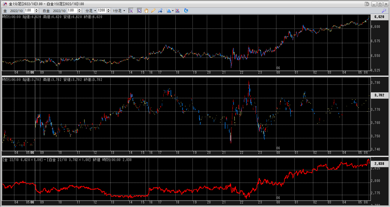 今保持している鞘拡大の仕掛け金買い1枚-白金売り2枚はそのままにしておきます。