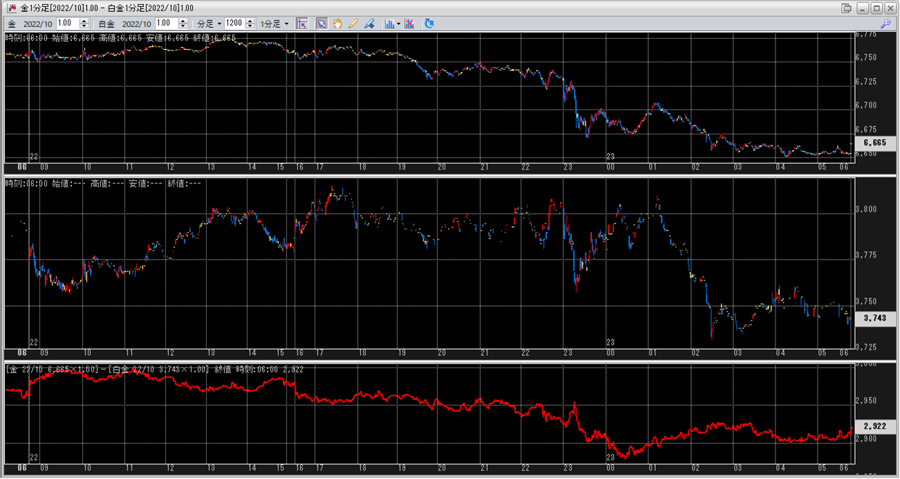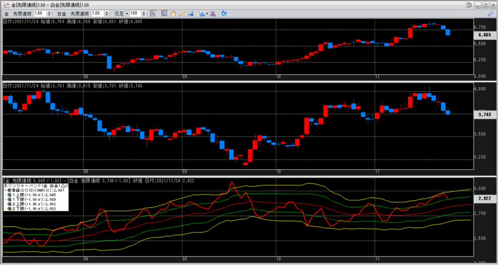 金白金の鞘の値段は、 +1σまで縮小したが、