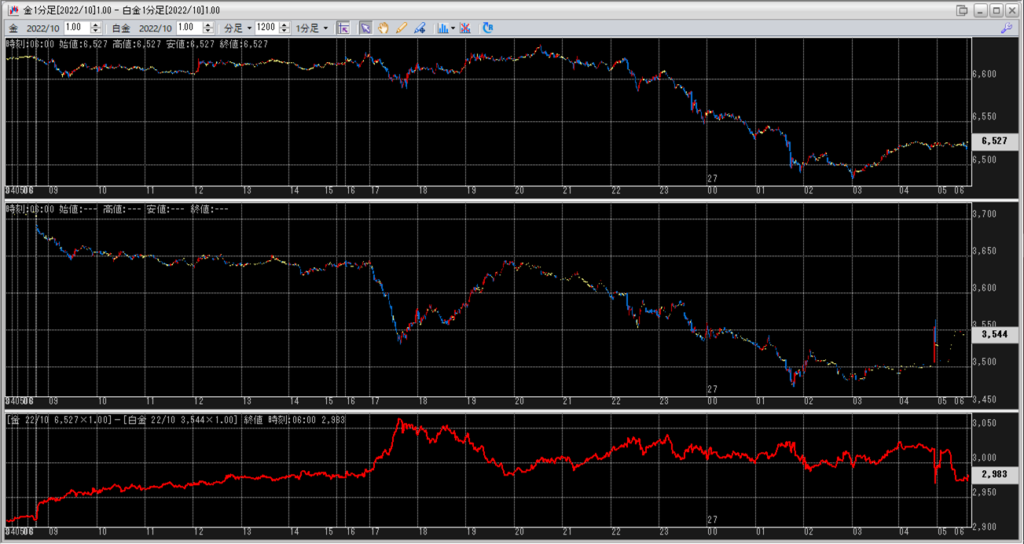先日、鞘拡大の仕掛け金買い1枚-白金売り2枚を仕切ったのが早すぎたようですw