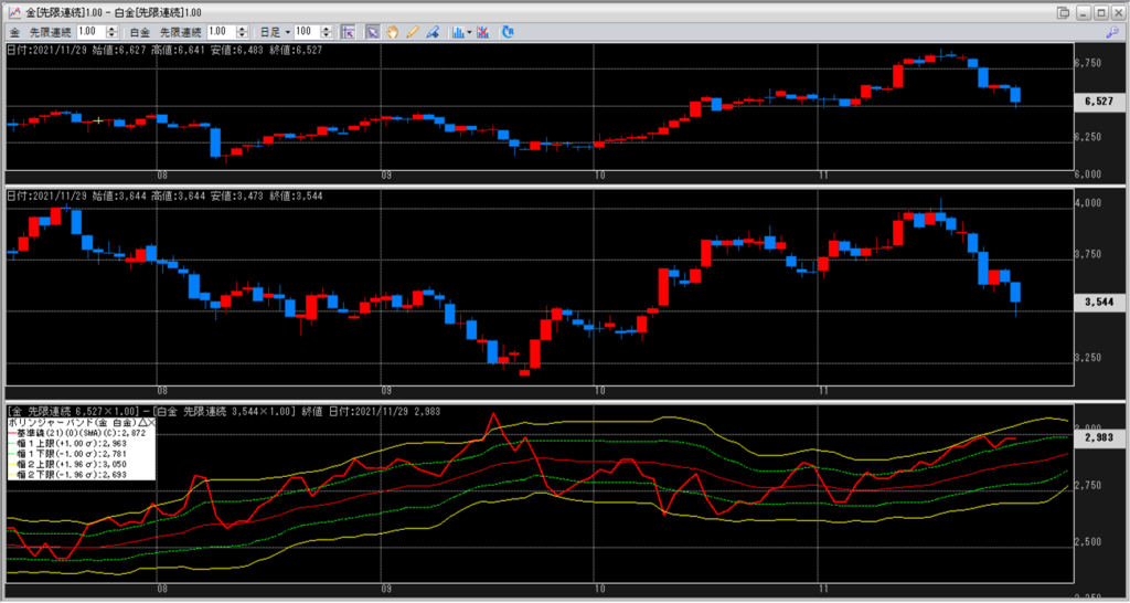 金白金の鞘の値段は、+2σまで拡大していくのか、+1σを目指し、縮小していくのか。
