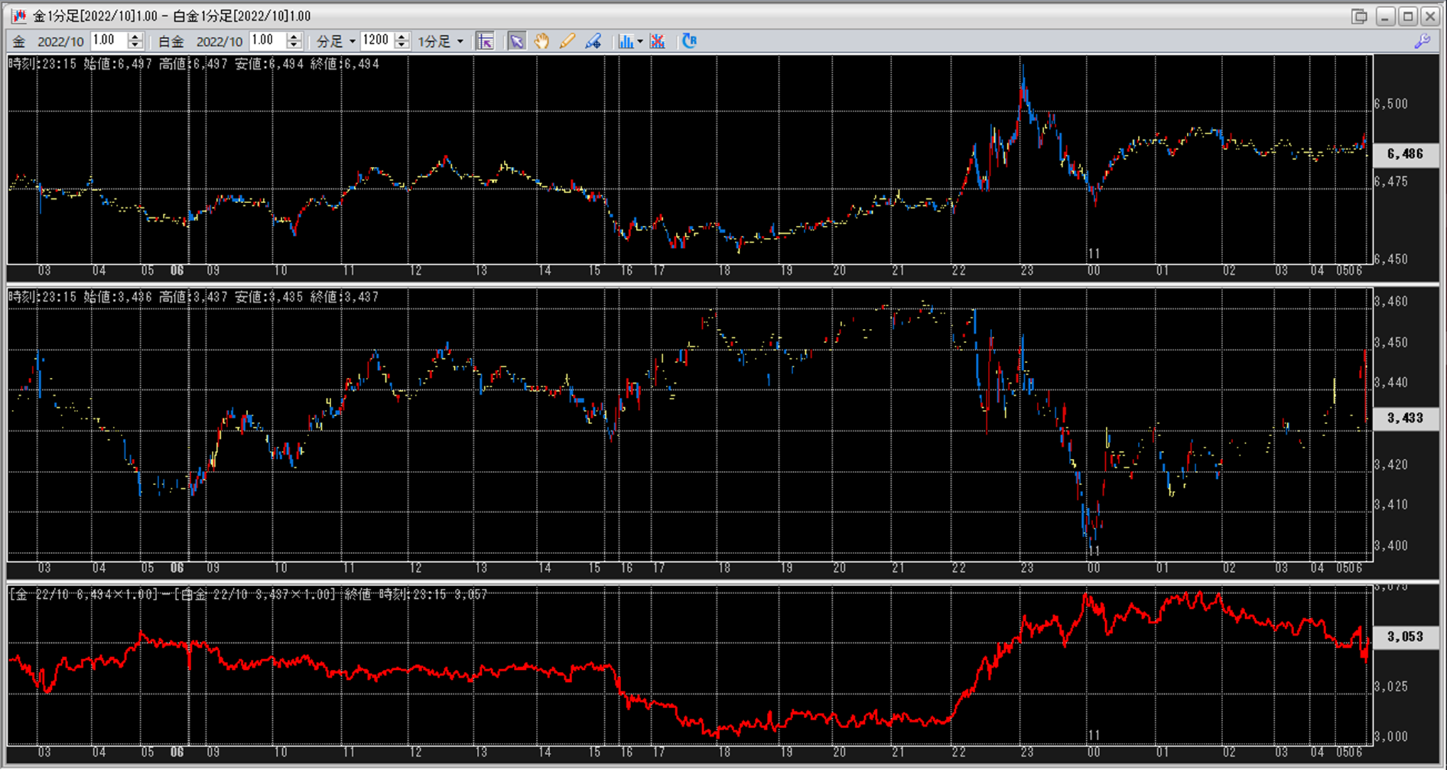 上:大阪取引所 金 2022年10月限 1分足