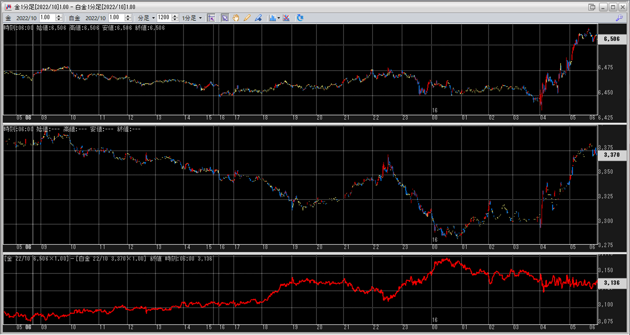 上:大阪取引所 金 2022年10月限 1分足