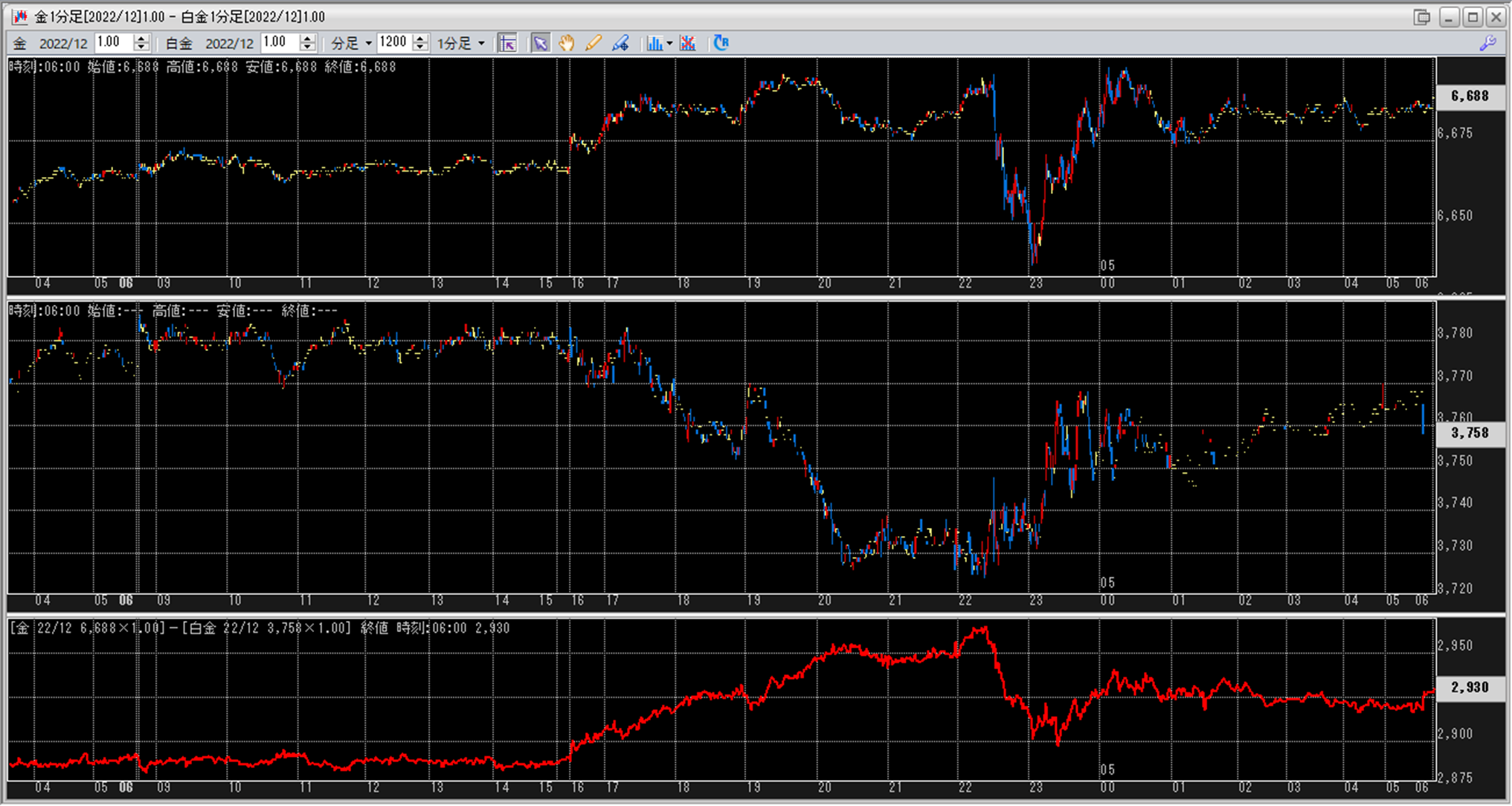 しかし、金のチャートは下落傾向、白金のチャートは上昇傾向なので、