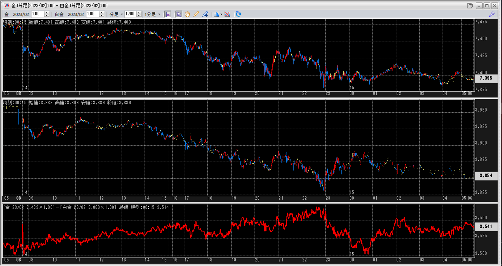 上:大阪取引所 金 2023年2月限 1分足