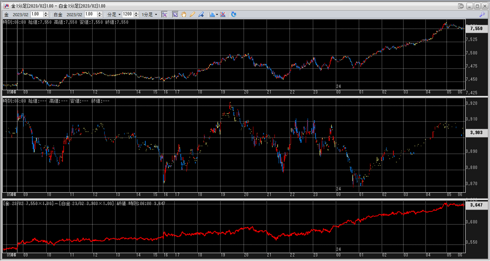 上:大阪取引所 金 2023年2月限 1分足