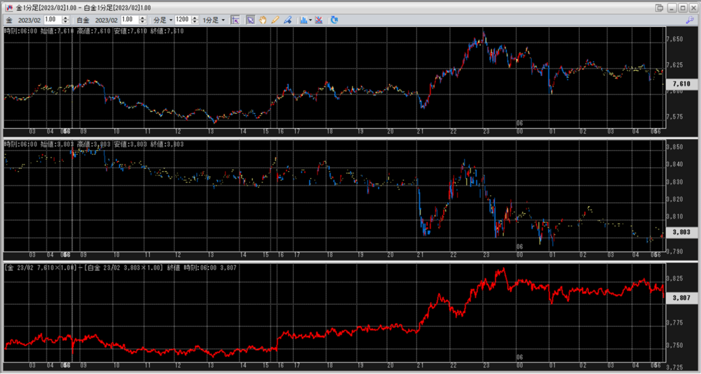 金と白金だけのチャートをそれぞれを見て考えると、