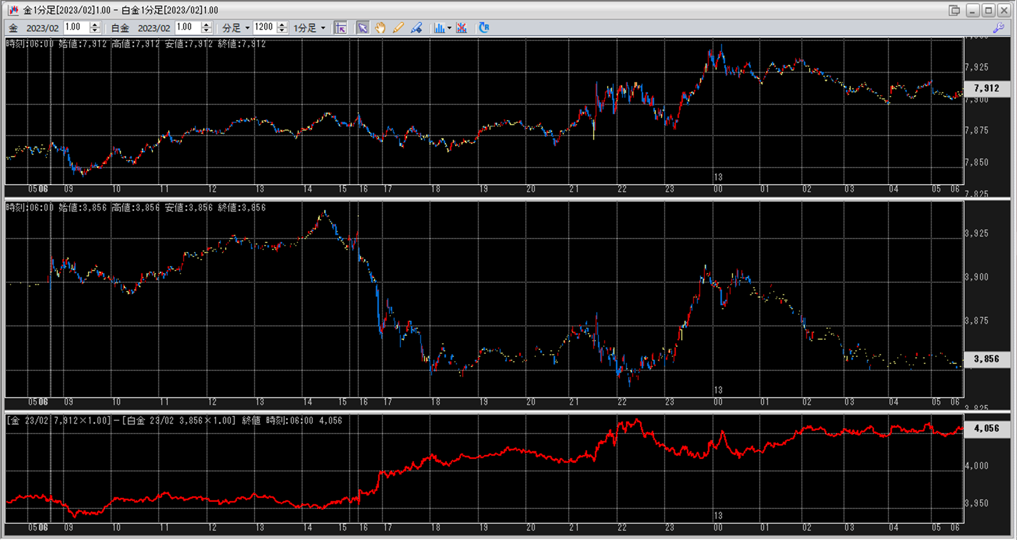 金と白金だけのチャートをそれぞれを見て考えると、鞘拡大しそうには見えます。