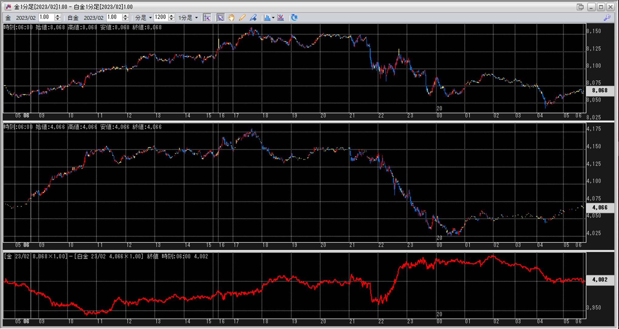金白金の鞘は、最近は短期線に跳ね返される形で鞘拡大というパターンとなっています。