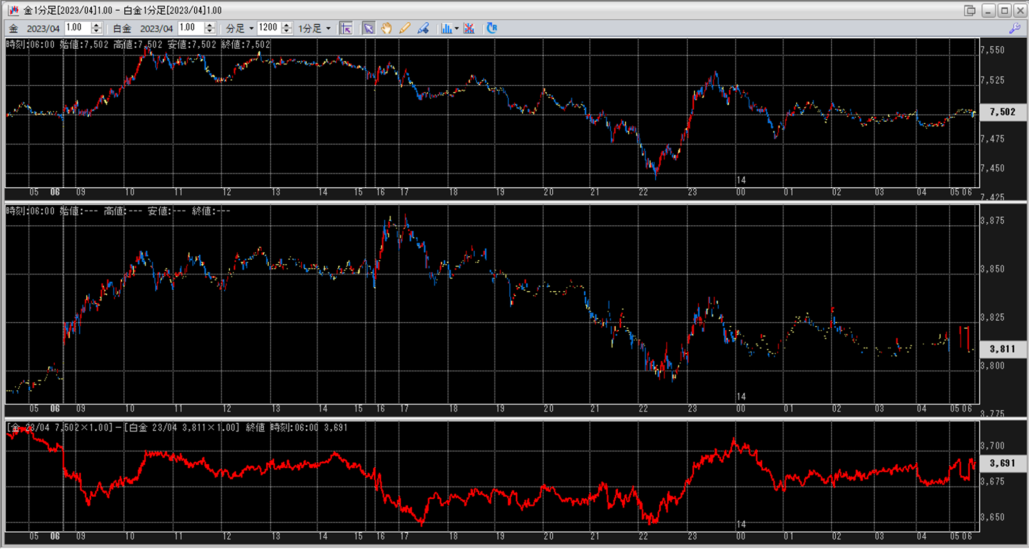 鞘縮小の仕掛け金売り1枚-白金買い2枚を建てようかと検討したいと思います。