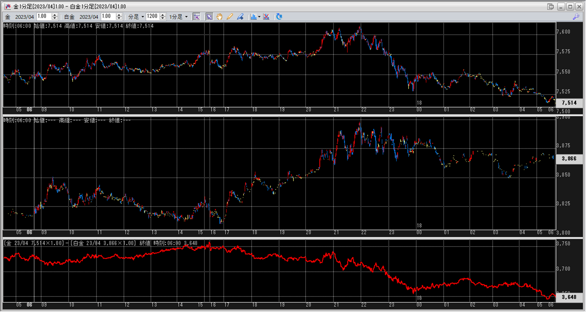 上:大阪取引所 金 2023年4月限 1分足