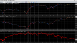 移動平均は、短期線は上向き、中期線は下向き、長期線は横向きになっています。