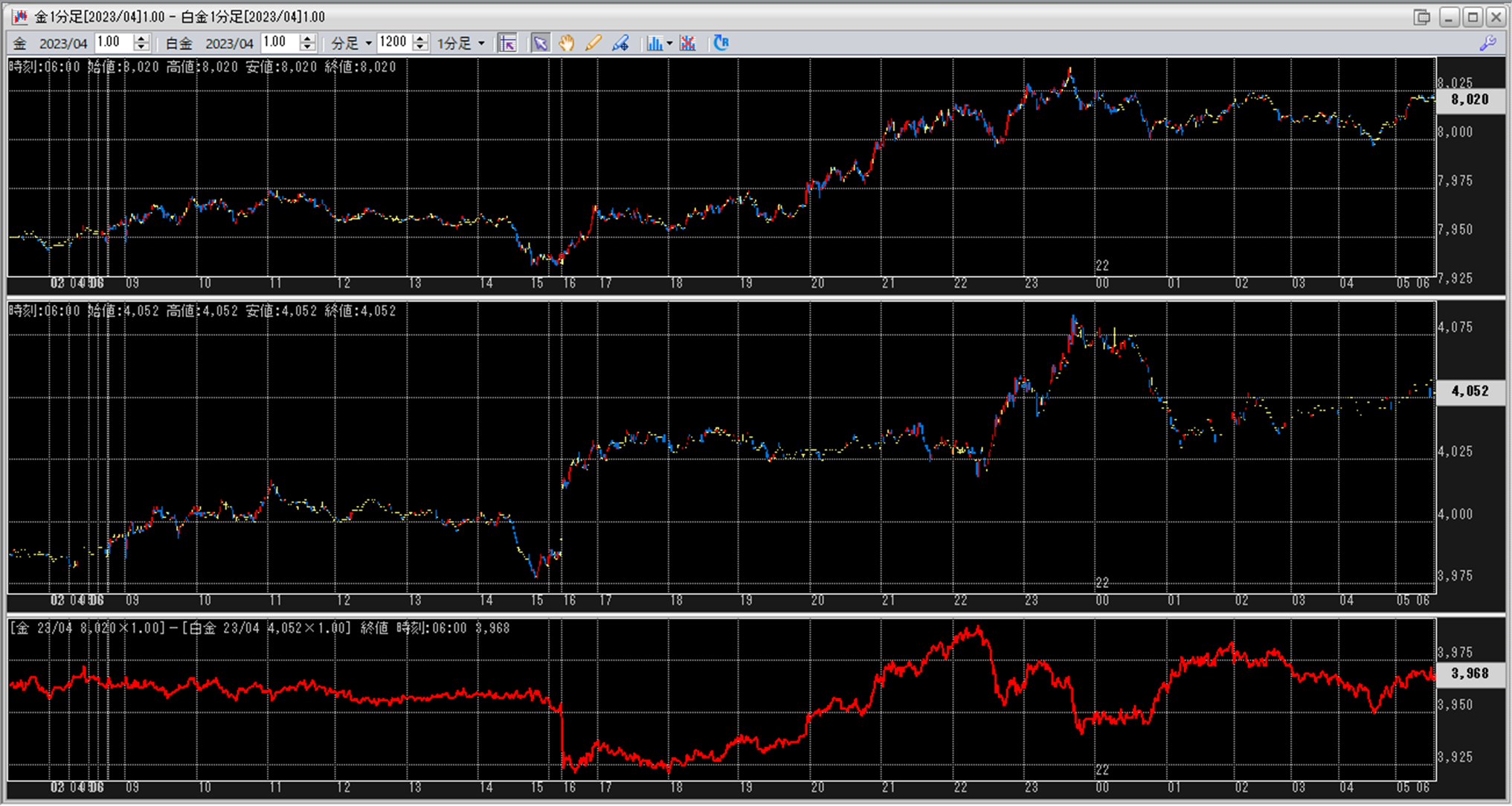 上:大阪取引所 金 2023年4月限 1分足