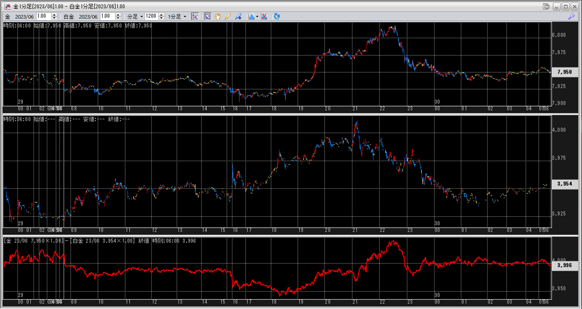 上:大阪取引所 金 2023年6月限 1分足