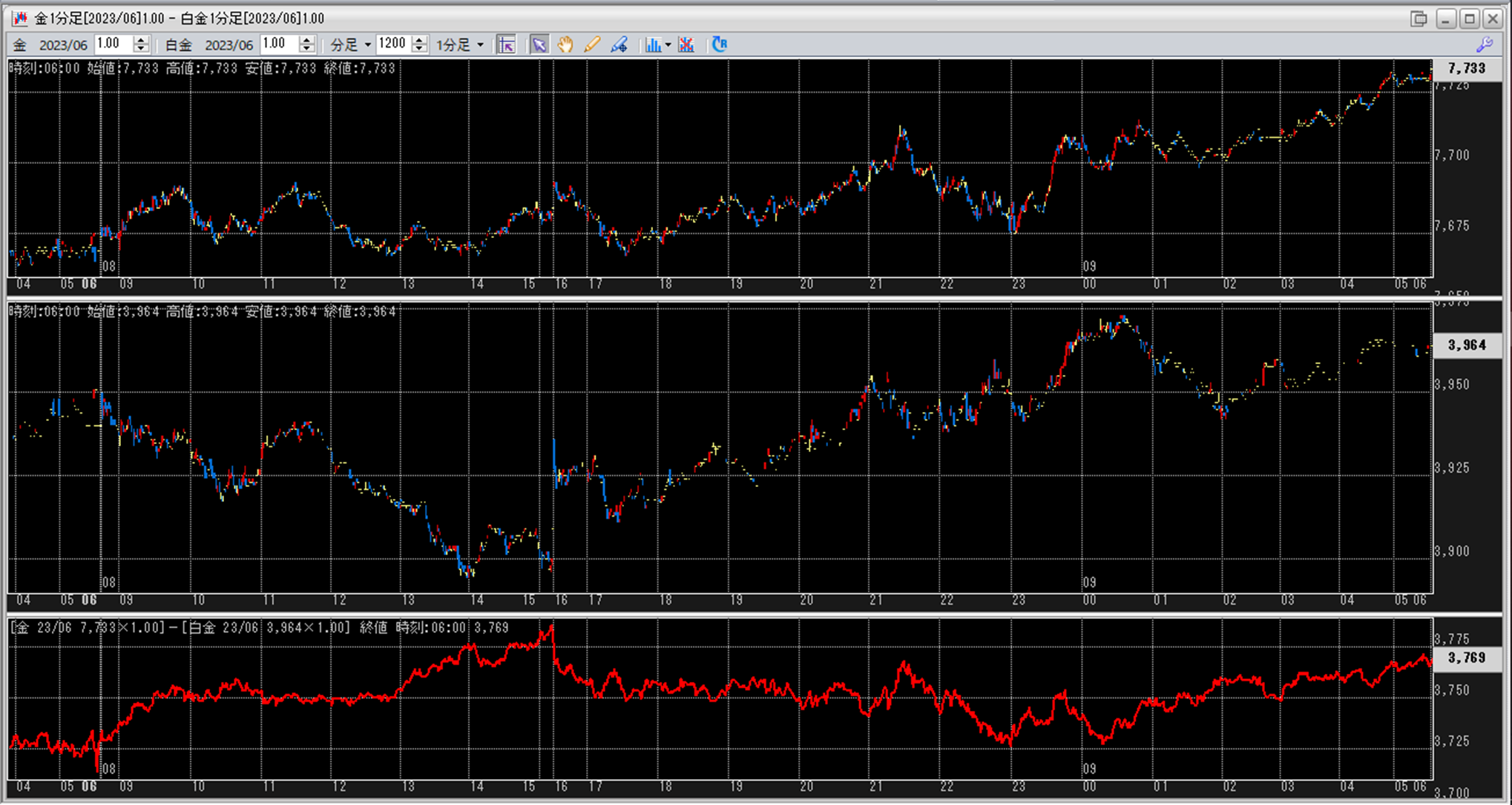 上:大阪取引所 金 2023年6月限 1分足