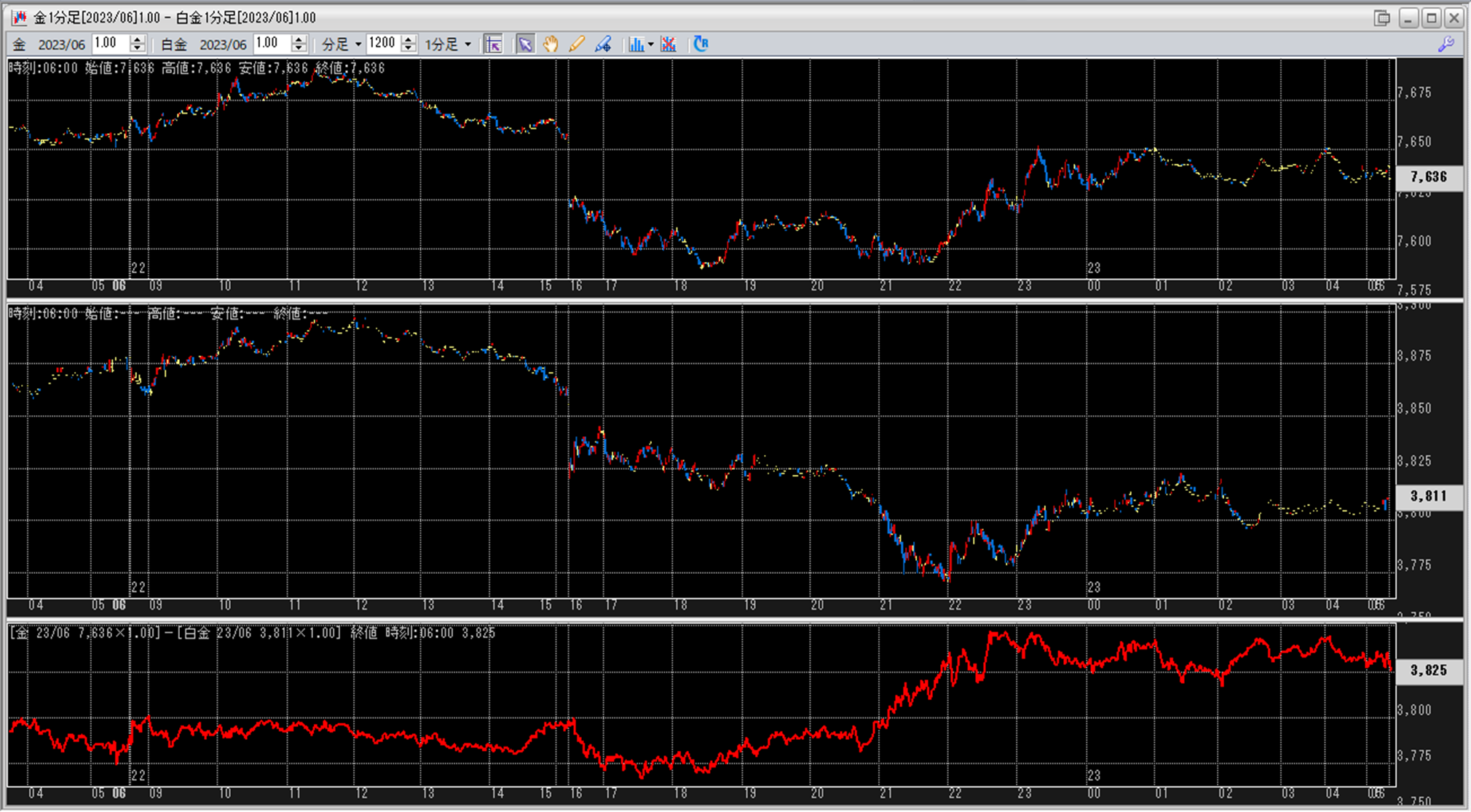 下:金白金鞘(金白金の価格差 = 金1グラムの価格 - 白金1グラムの価格)