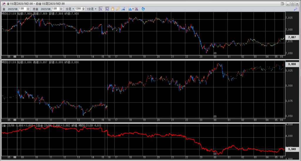 今のところは鞘拡大の仕掛け金売り1枚-白金買い2枚を保持していこうと思います。