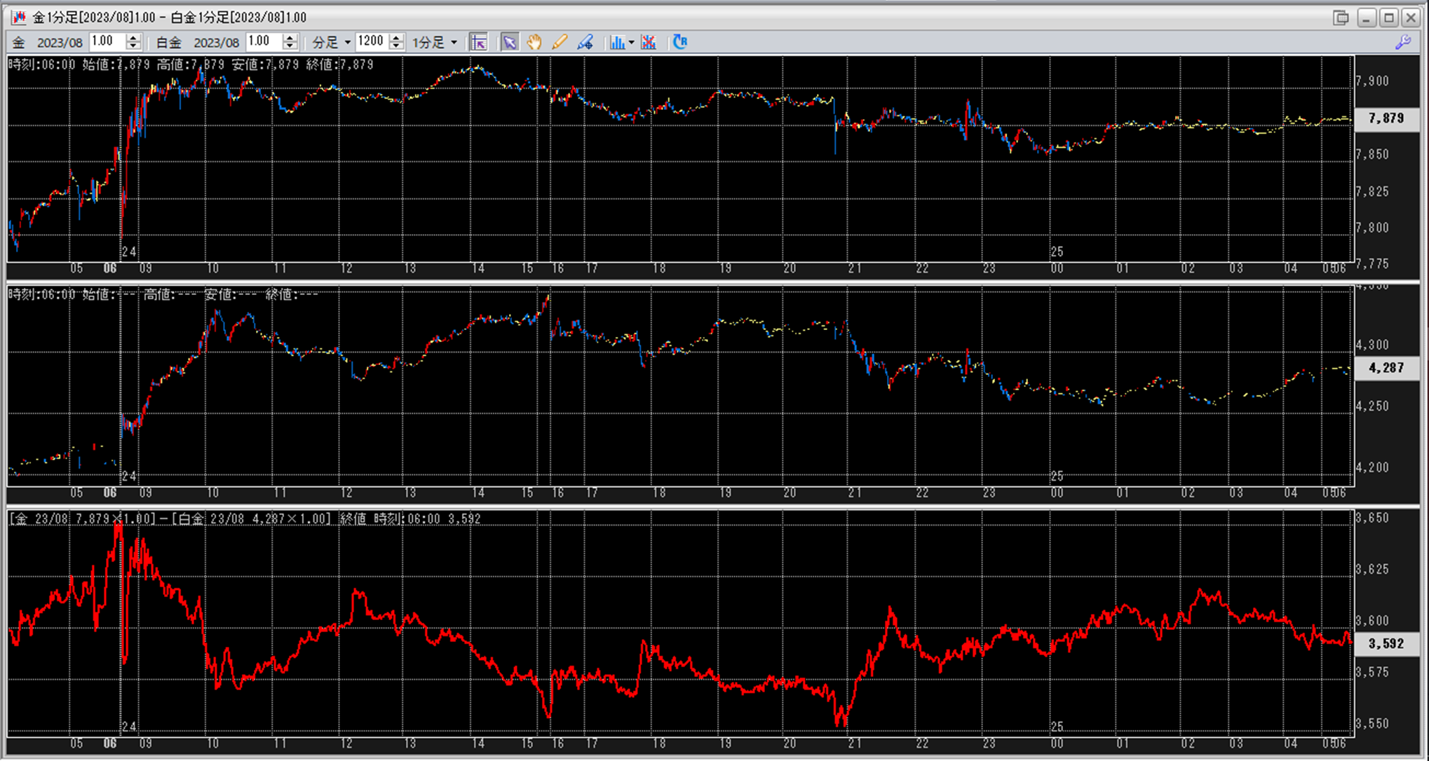 上:大阪取引所 金 2023年8月限 1分足