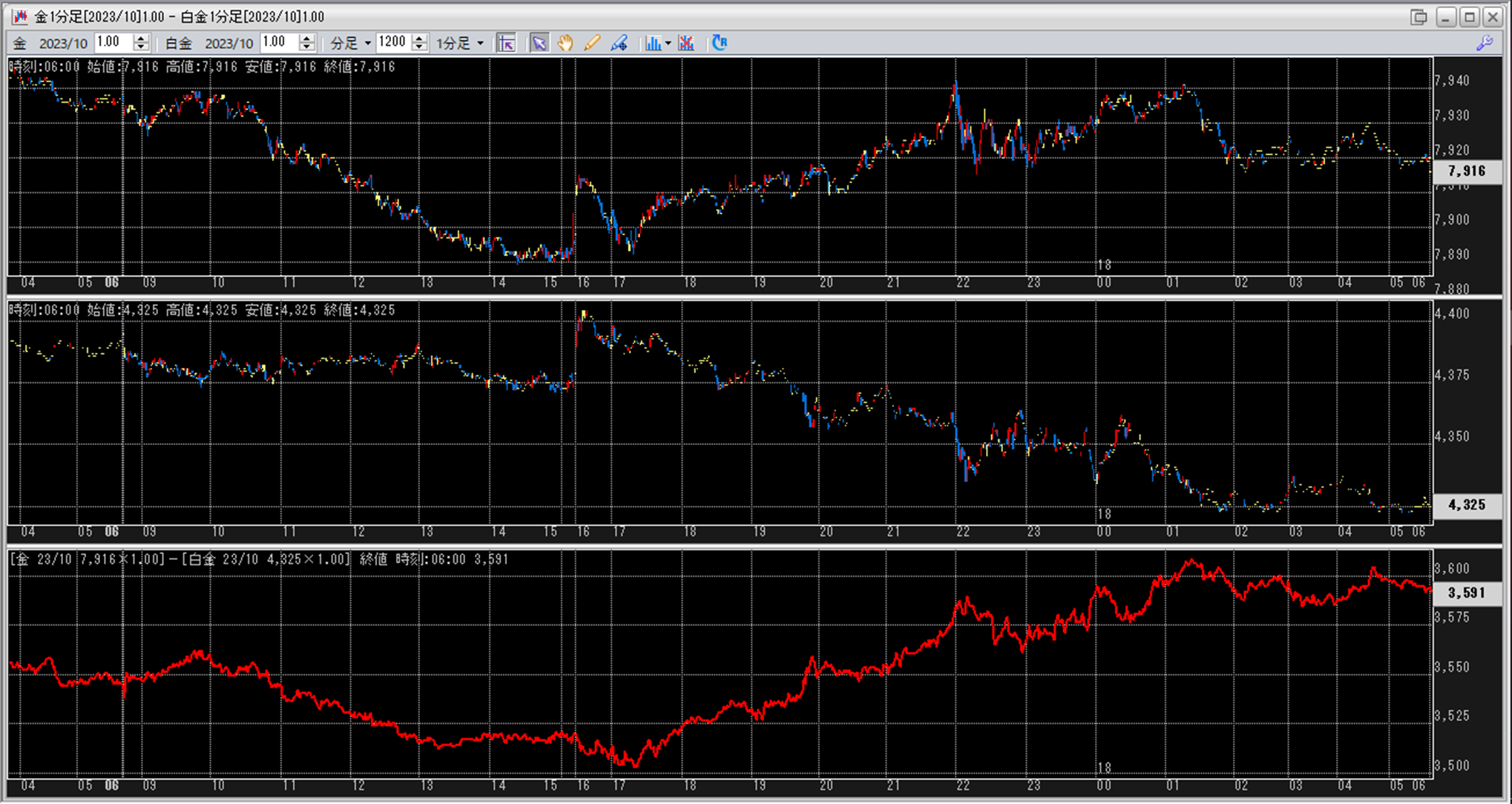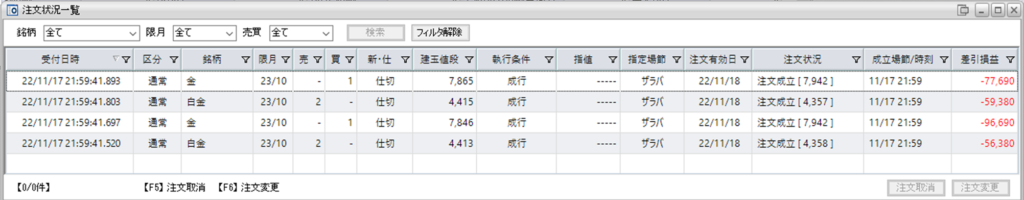 更に鞘縮小の仕掛け金売り1枚-白金買い2枚を2組、損切しています。