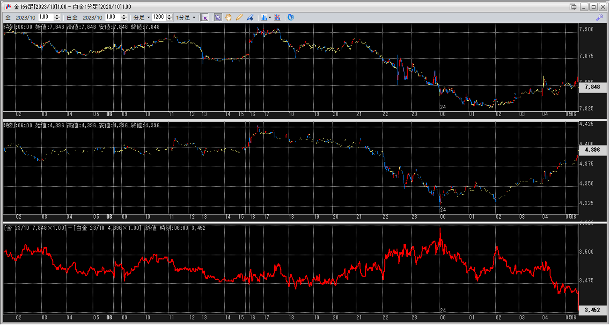 上:大阪取引所 金 2023年10月限 1分足