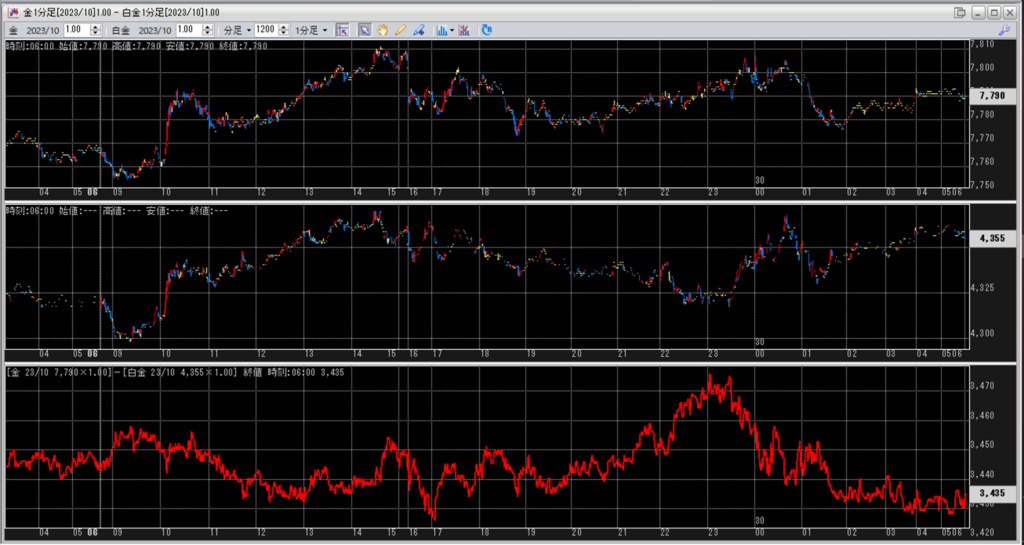 金白金鞘値動きのチャートを張り付けています。