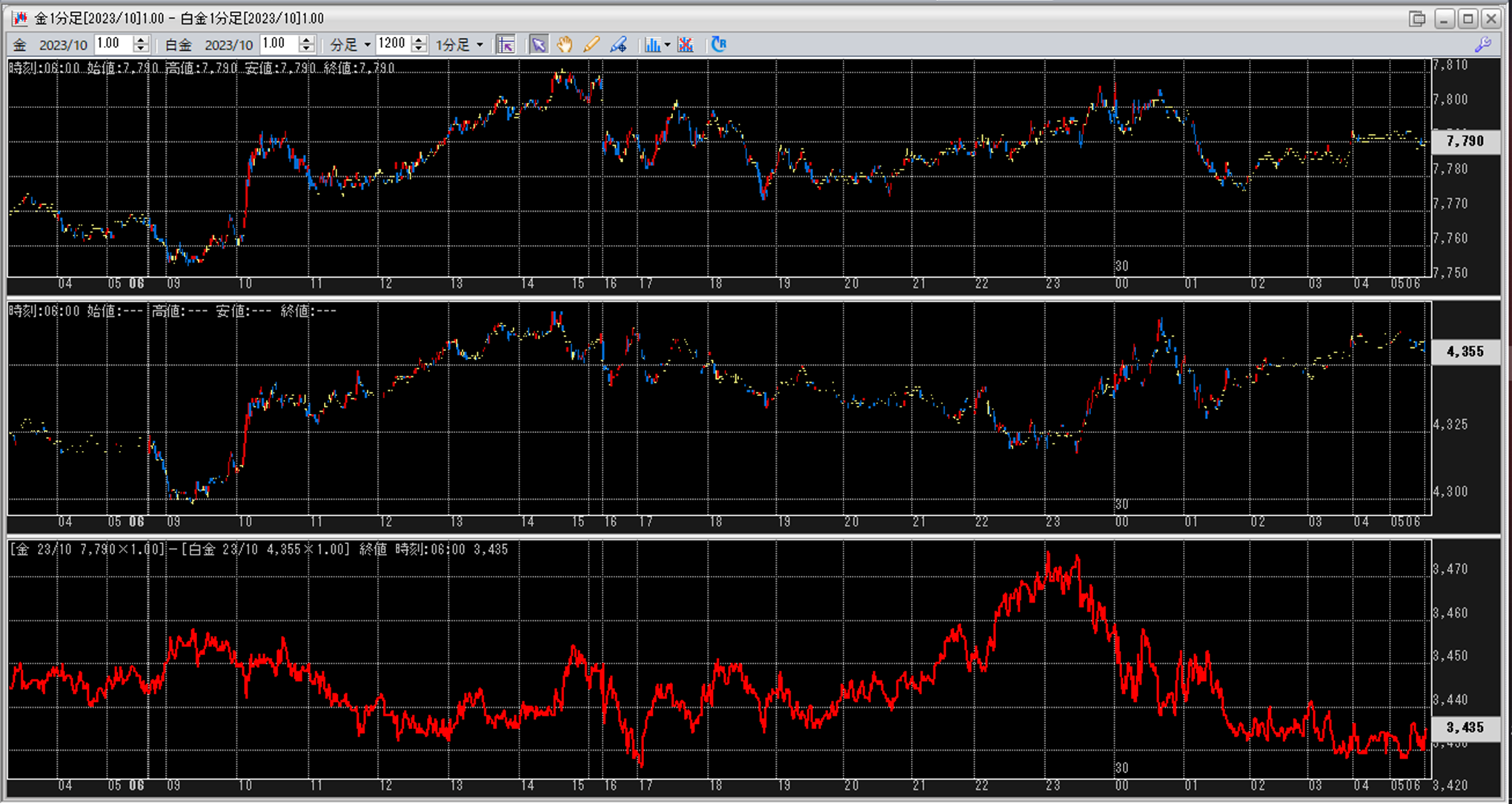 上:大阪取引所 金 2023年10月限 1分足