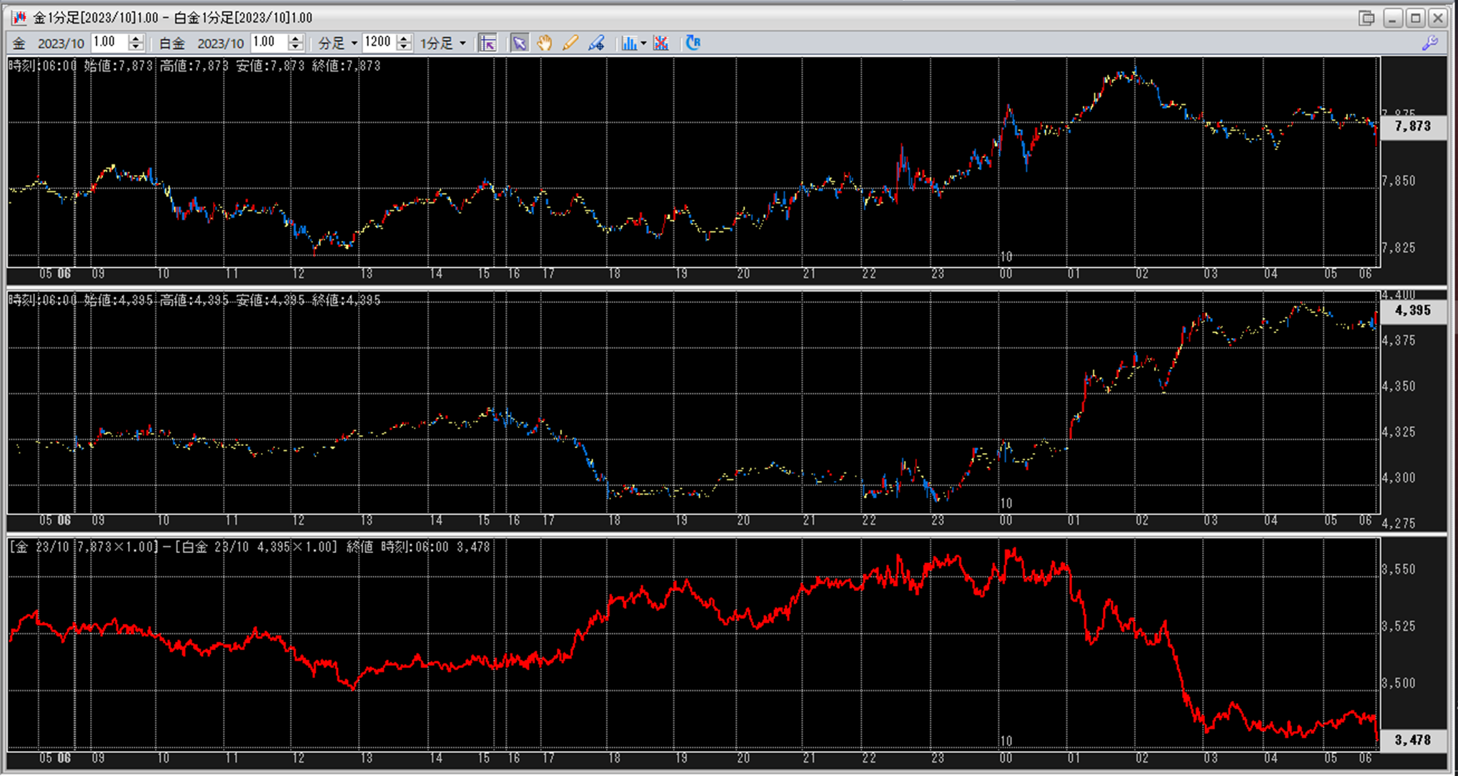 上:大阪取引所 金 2023年10月限 1分足