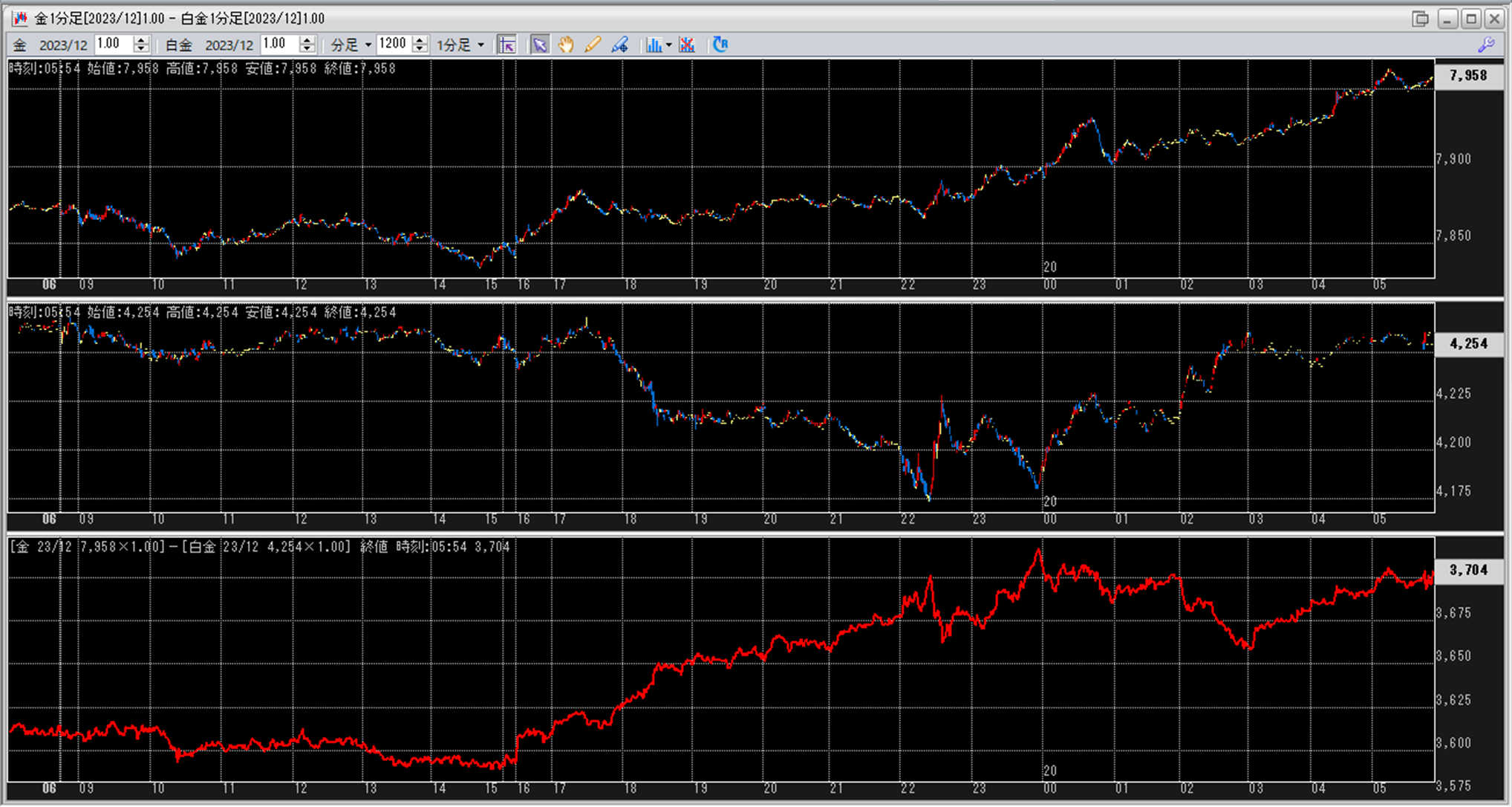 上:大阪取引所 金 2023年12月限 1分足