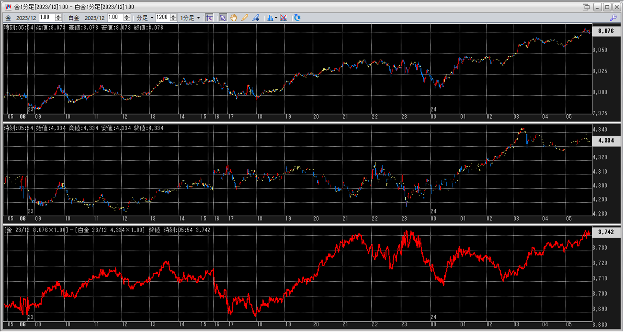 上:大阪取引所 金 2023年12月限 1分足