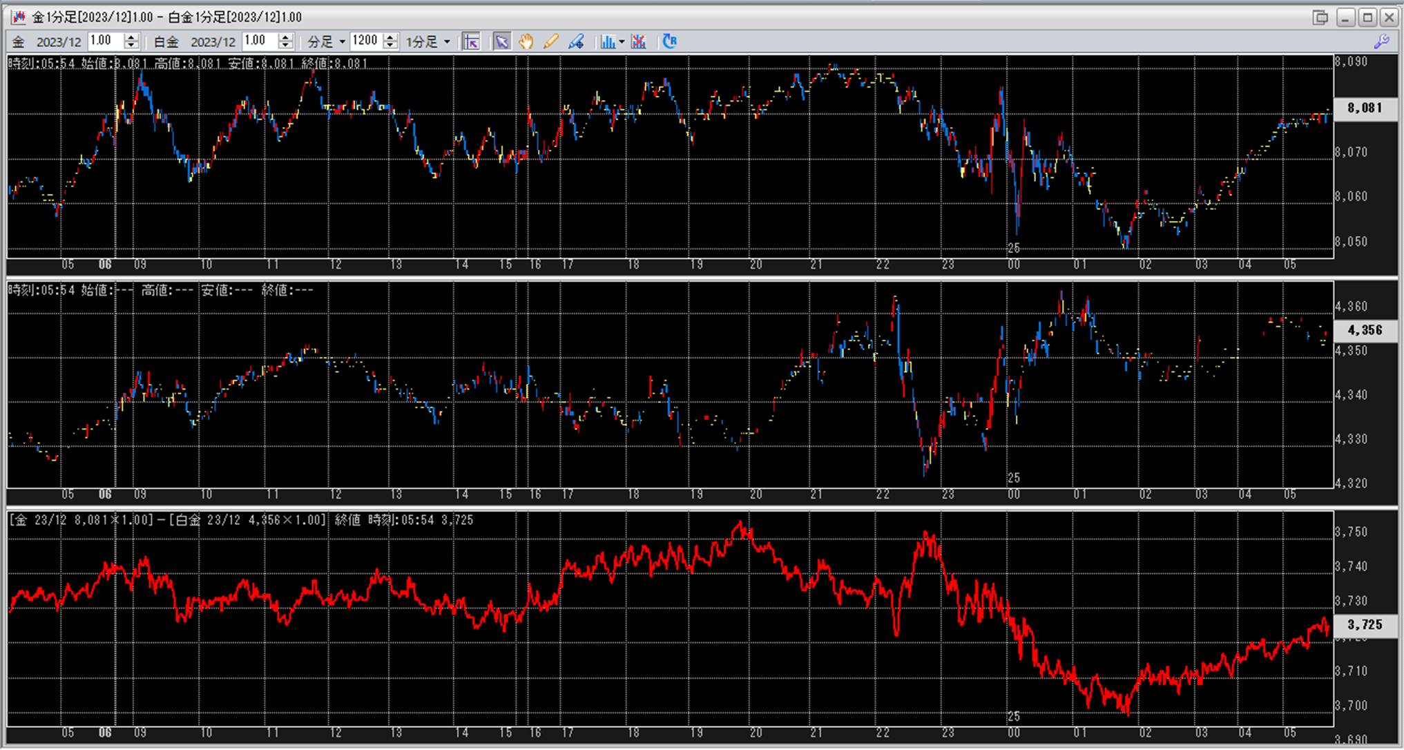 上:大阪取引所 金 2023年12月限 1分足