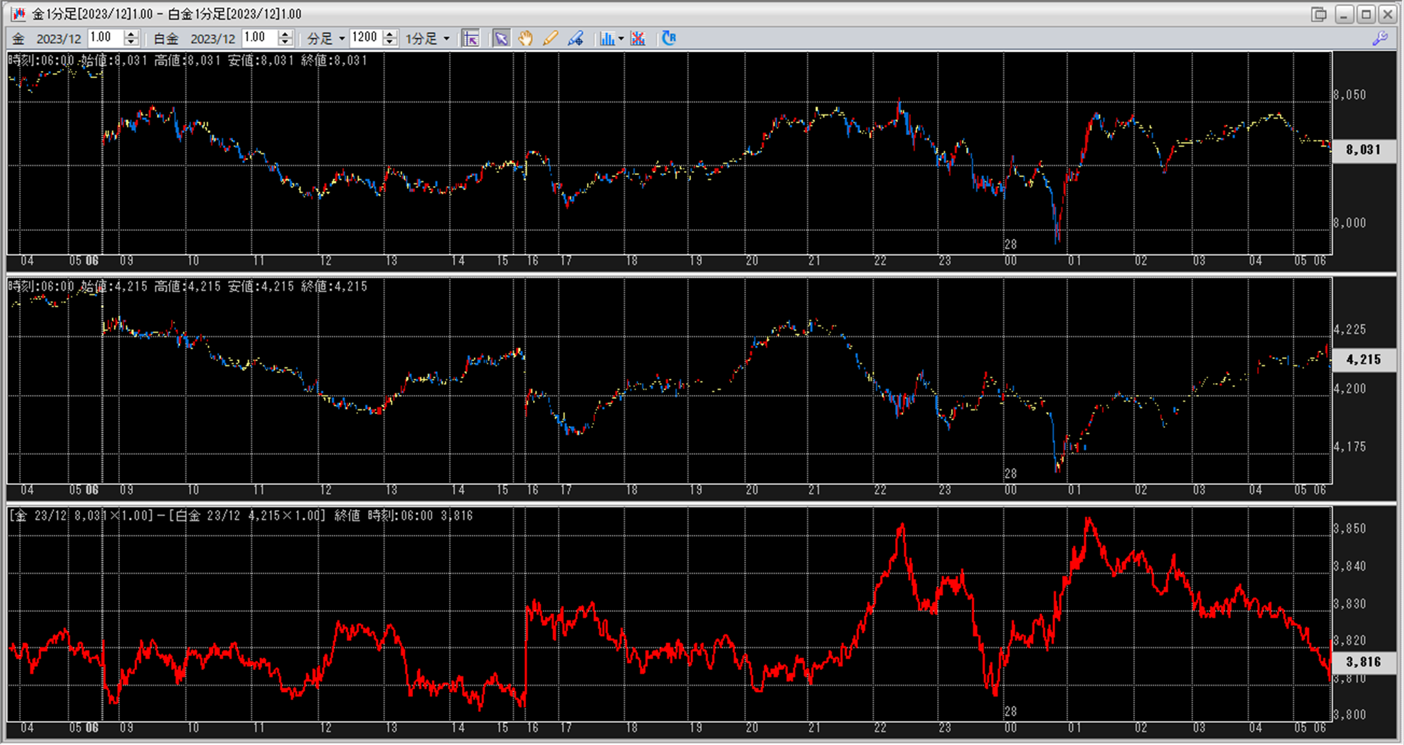 上:大阪取引所 金 2023年12月限 1分足
