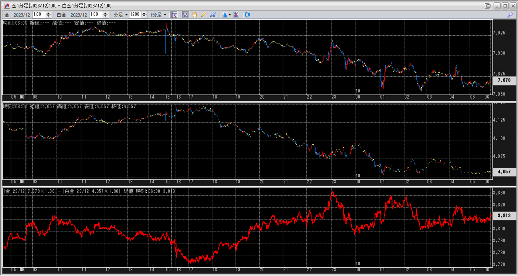 どこかで鞘拡大の仕掛金買い1枚-白金売り2枚を建てていければと考えています。