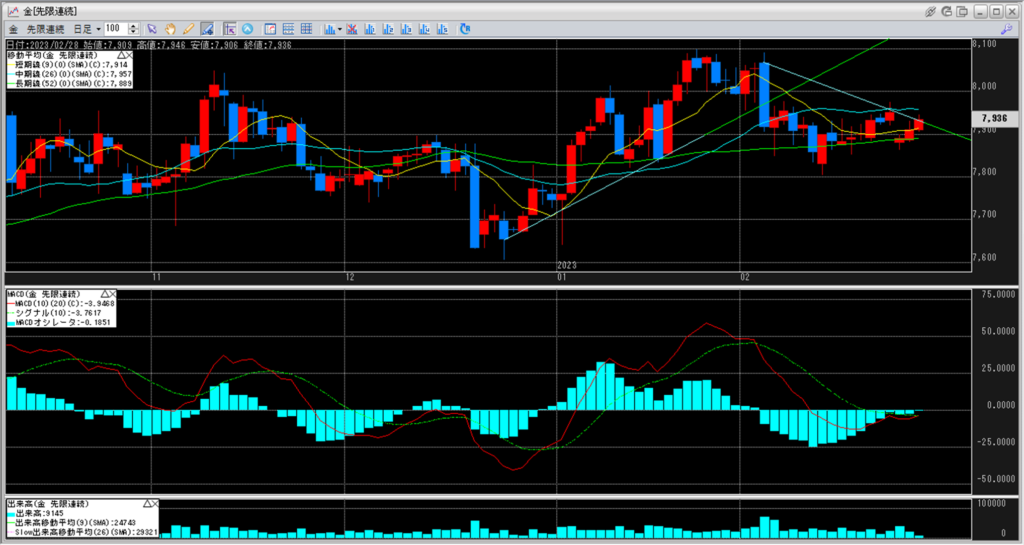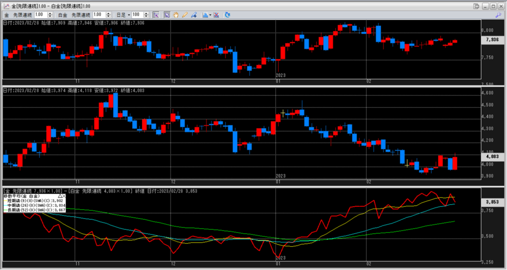 下記に金白金鞘の移動平均線のチャートを貼り付けています。