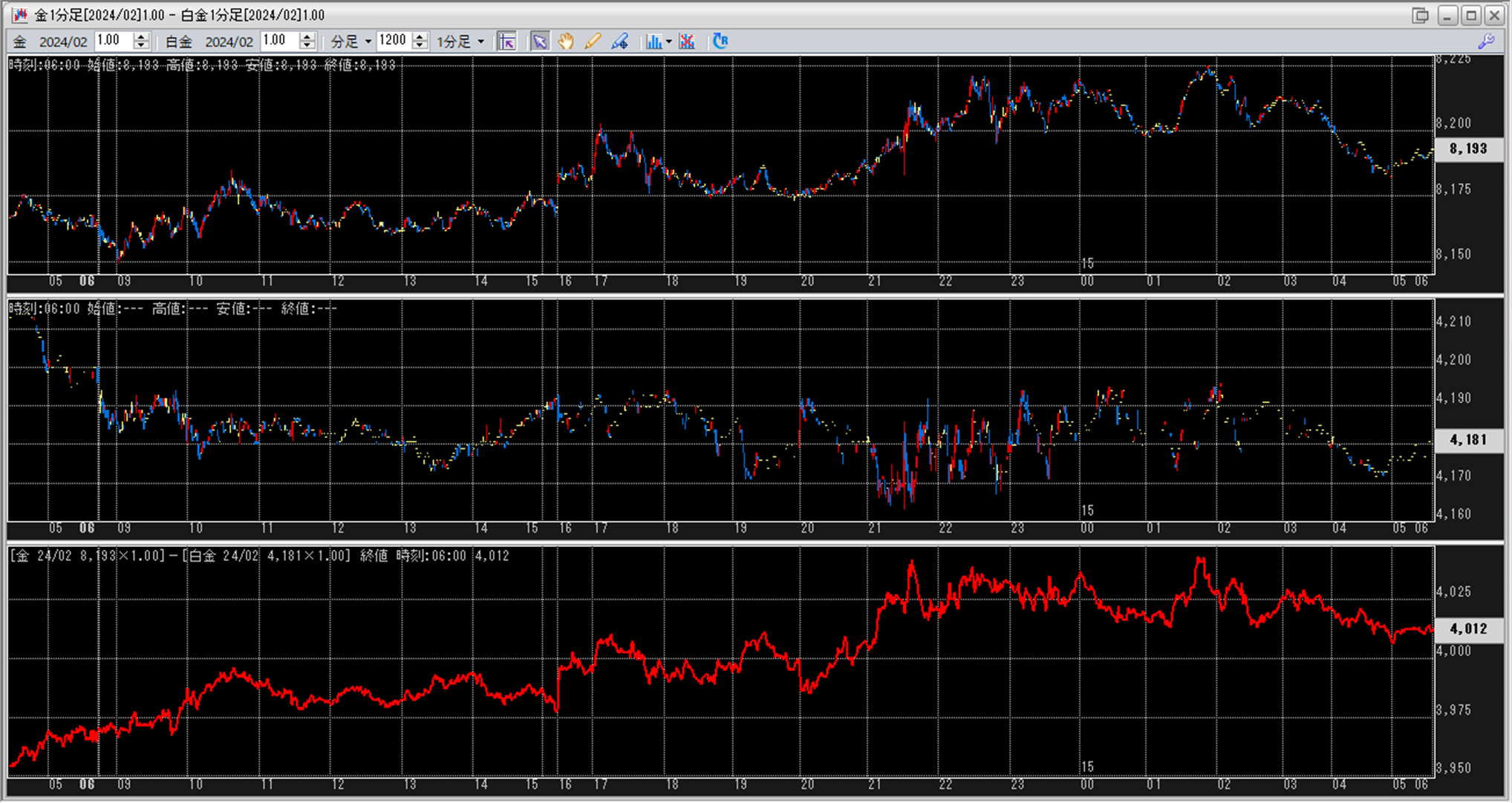 上:大阪取引所 金 2024年2月限 1分足