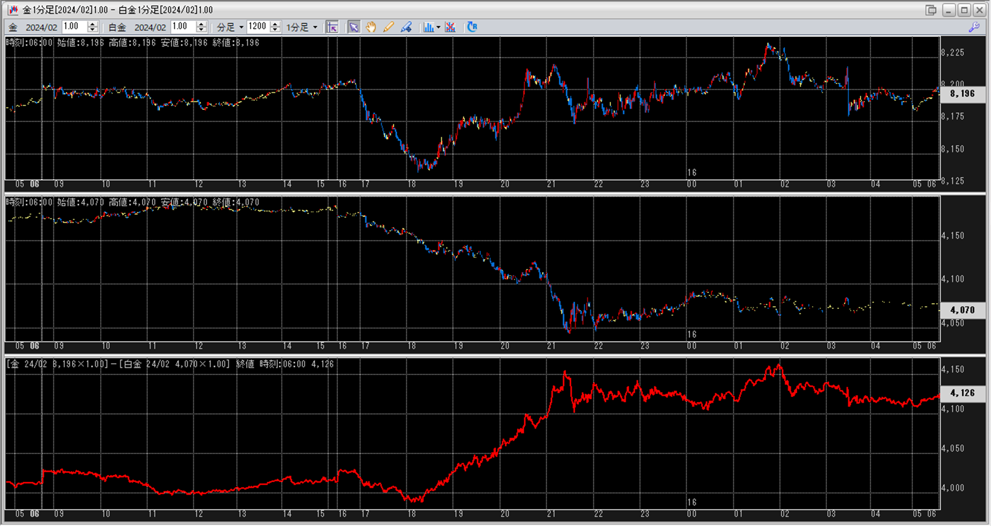 上:大阪取引所 金 2024年2月限 1分足