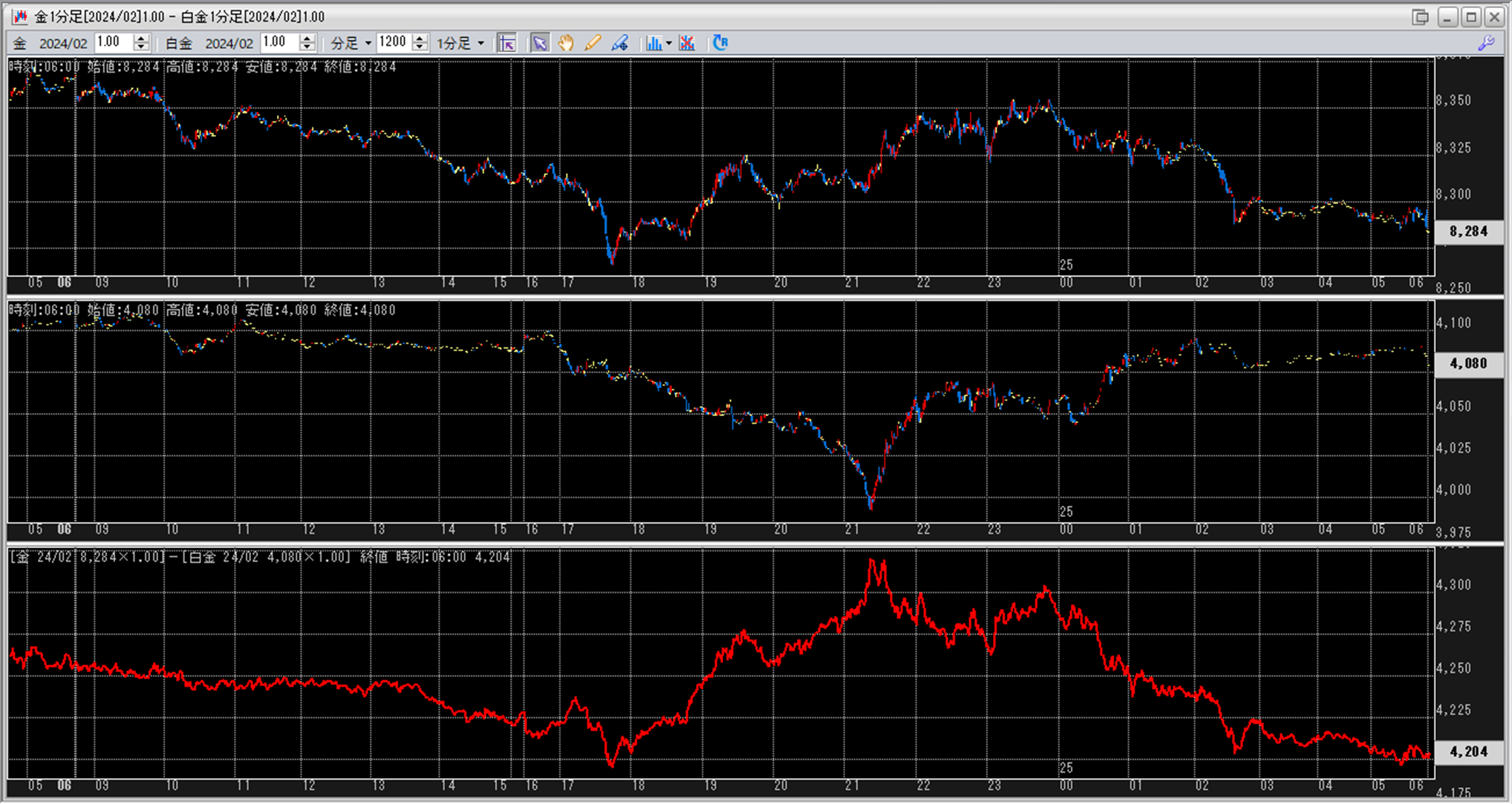 上:大阪取引所 金 2024年2月限 1分足