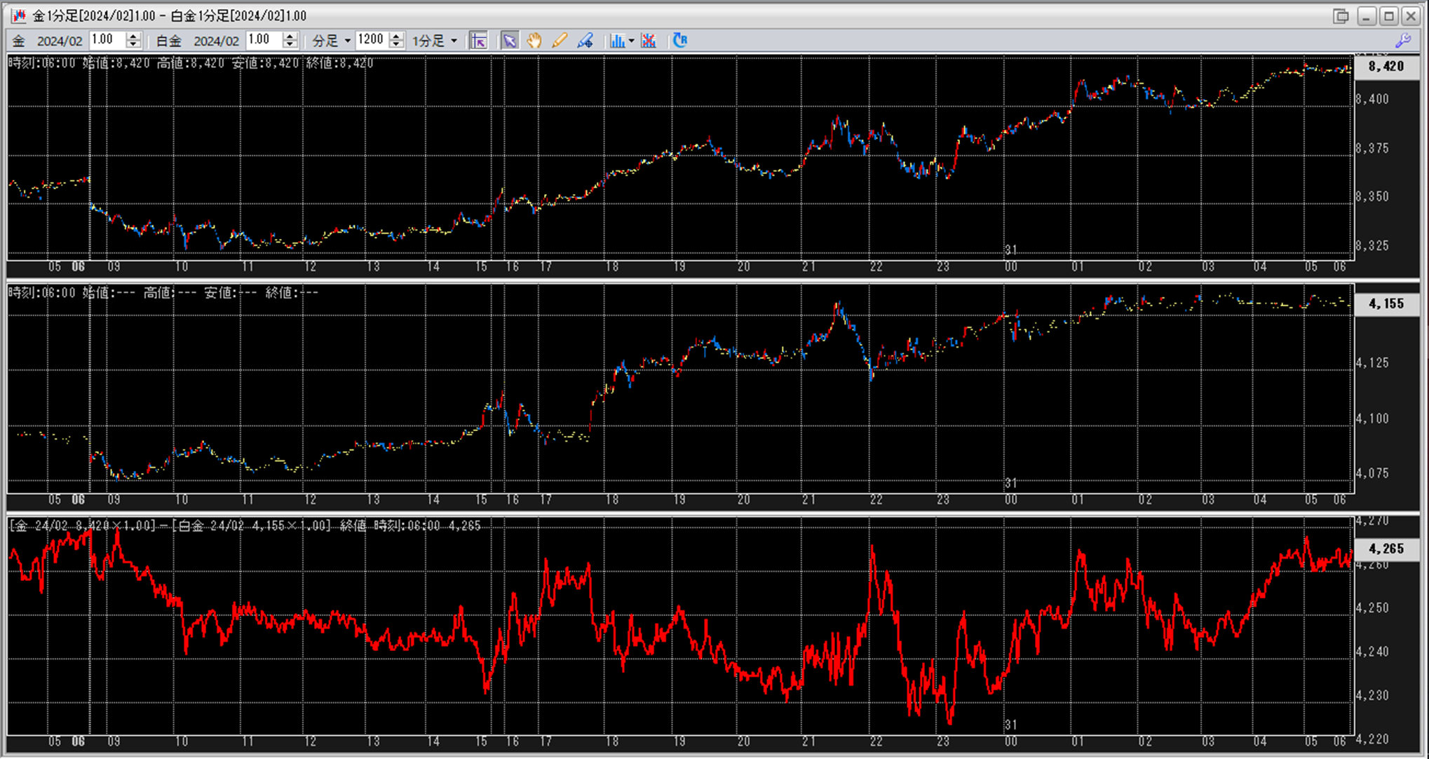 鞘拡大の仕掛金買い1枚-白金売り2枚を仕掛けて行くべきか。
