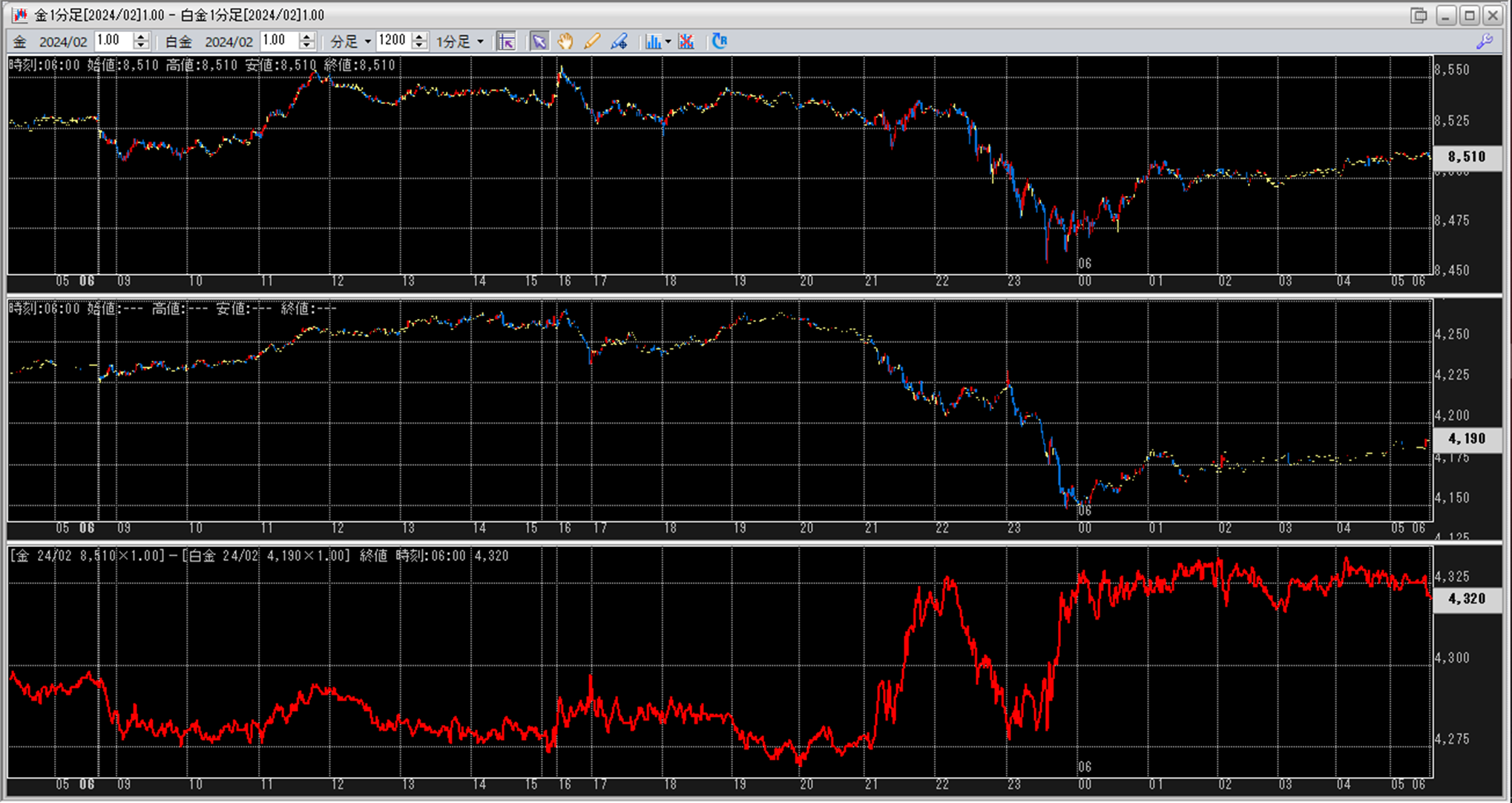上:大阪取引所 金 2024年2月限 1分足