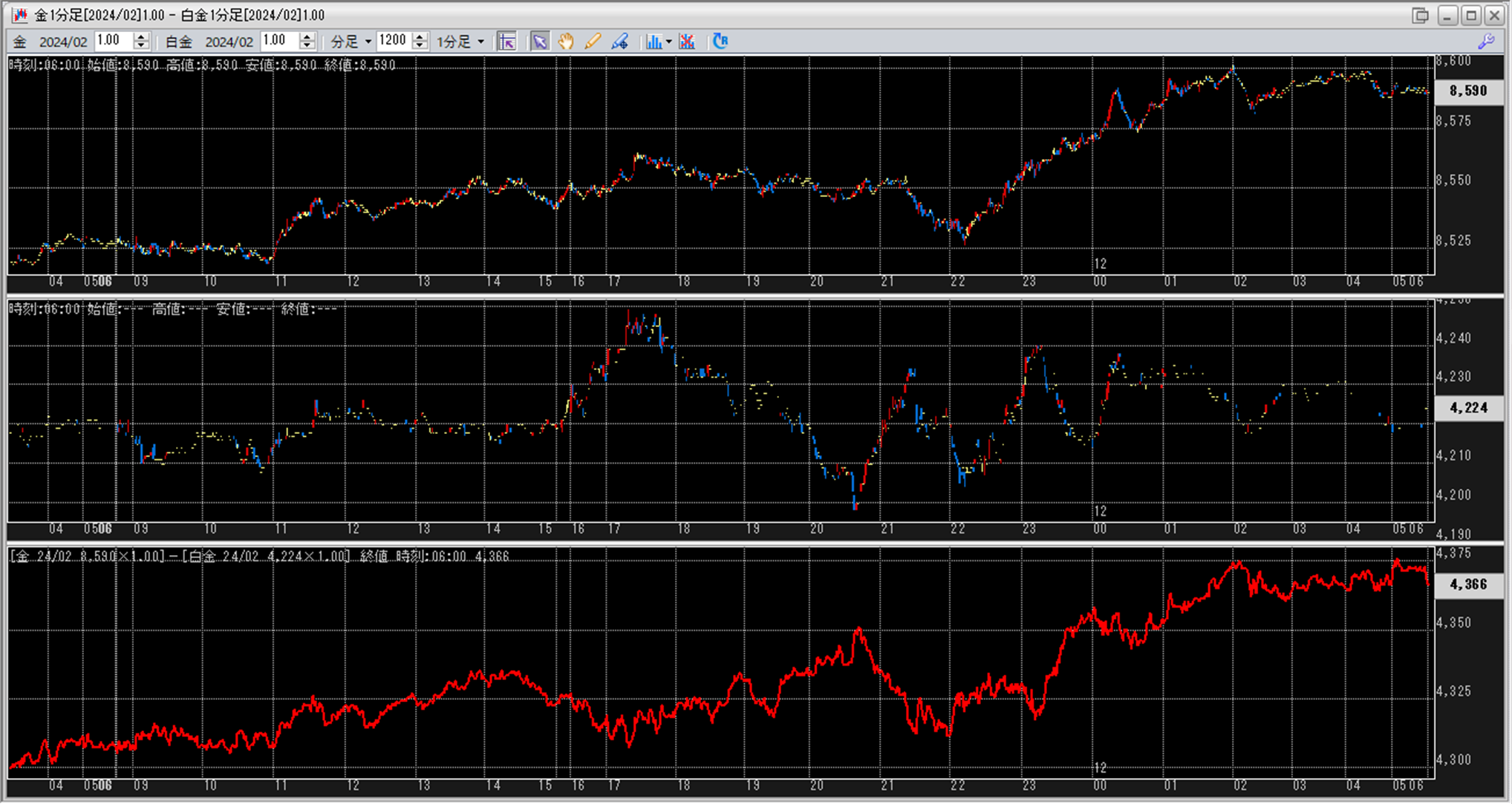 上:大阪取引所 金 2024年2月限 1分足