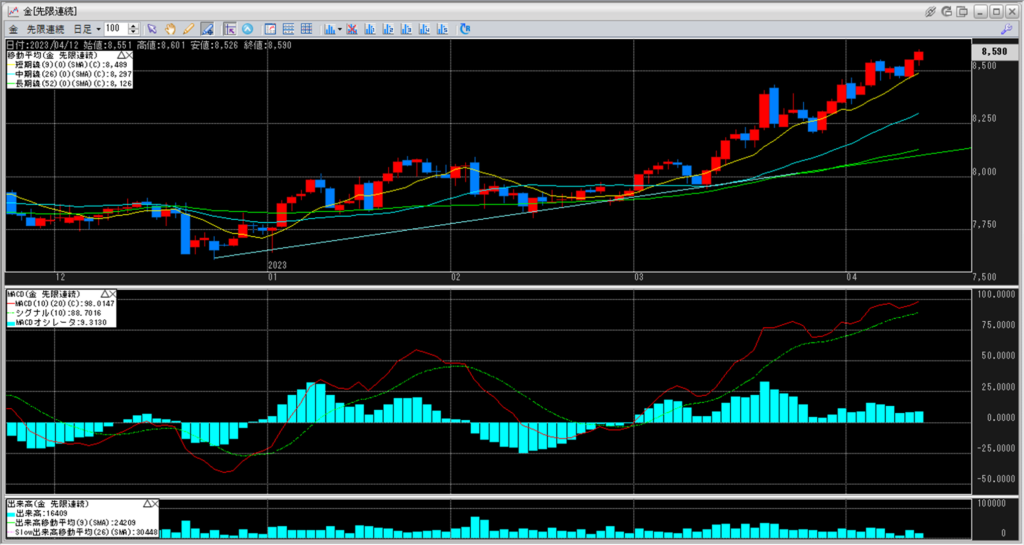 下記に金白金鞘の移動平均線のチャートを貼り付けています。