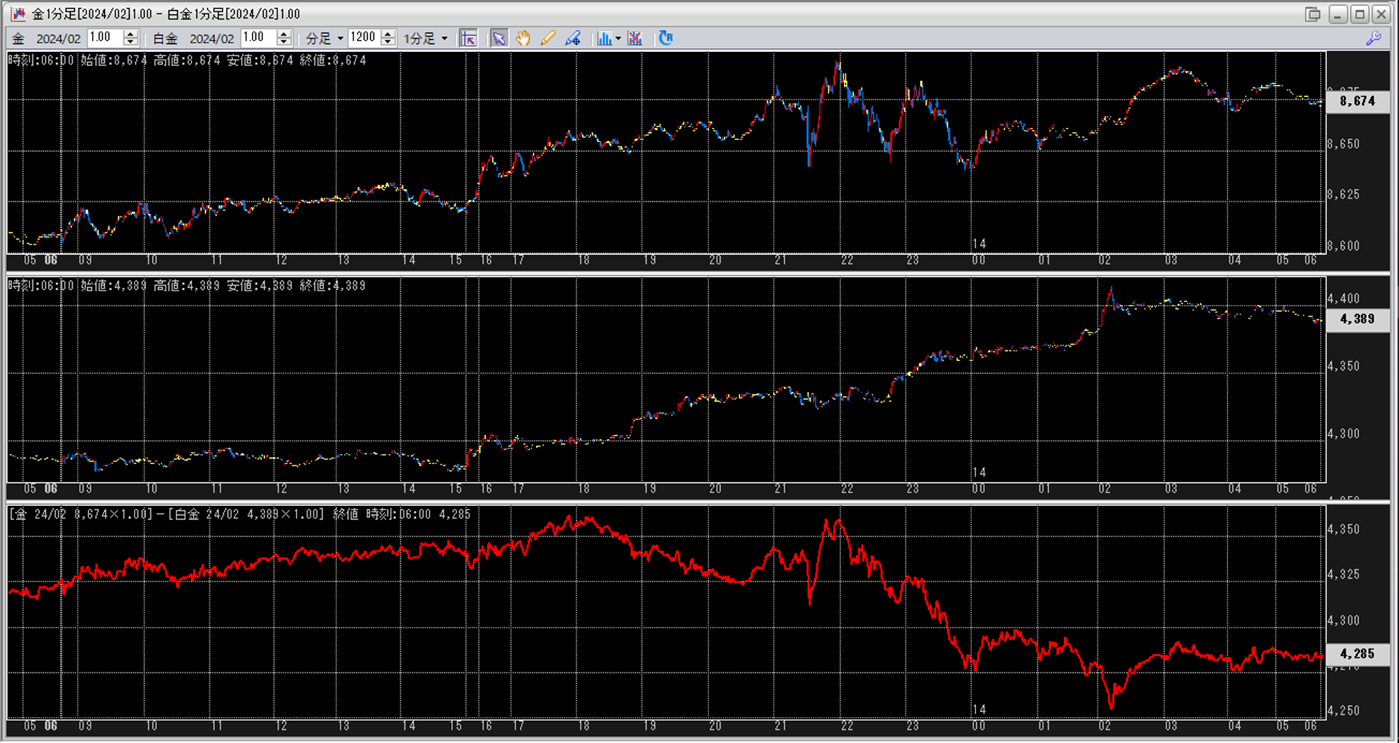 上:大阪取引所 金 2024年2月限 1分足
