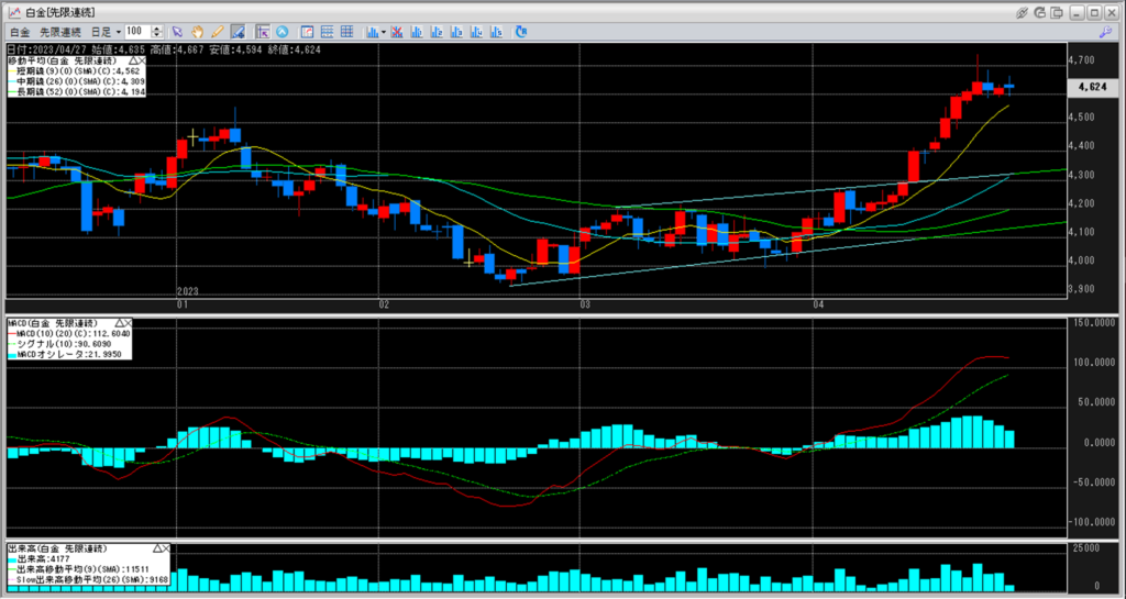 下記に金白金鞘の移動平均線のチャートを貼り付けています。